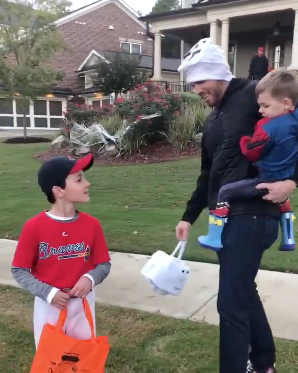 Kid dressed as Freddie Freeman runs into the real Freddie Freeman while trick-or-treating in most wholesome video of the week
