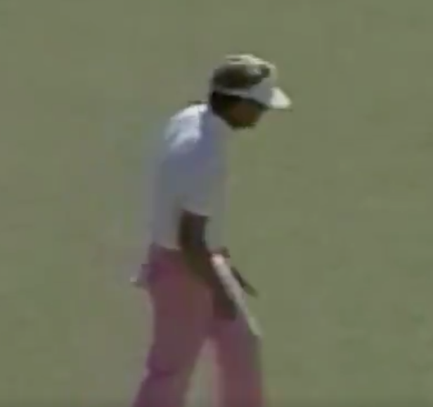 The tour compares Miller's move to Kevin Na's walk-in putts, but there's no comparison. While Na's signature reaction is fantastic in its own right, Miller's move is actually a “walk-away” putt. A no-look walk-away at that. Wow.