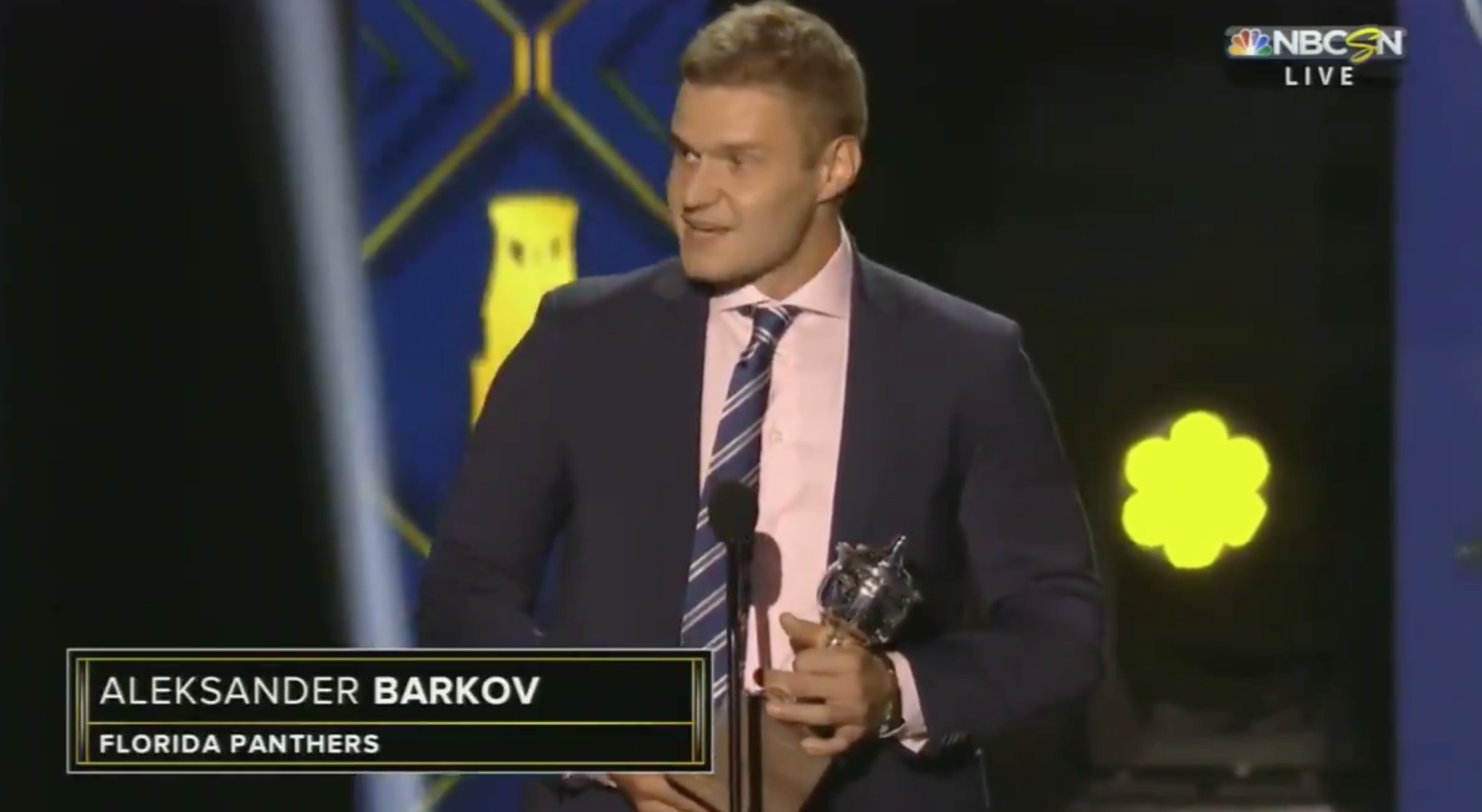 Barkov wasted no time in doing so, either, making it all the more vicious of a dagger. As he stepped to the mic with the trophy in hand, a group of fans in the rafters could be heard screaming for him. The quick-witted Barkov knew exactly how to respond: