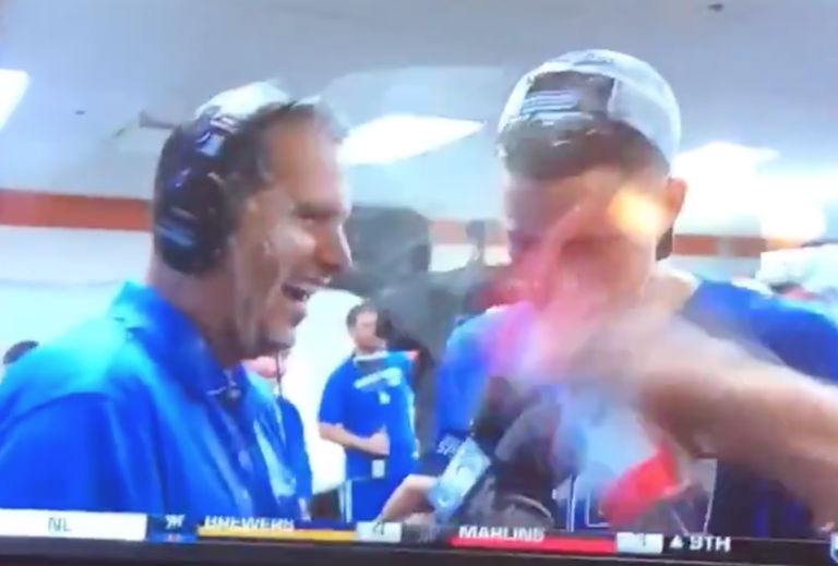 His name is David Vassegh, and he's the host of "Dodger Talk" on AM 570 in Los Angeles. Tuesday night was one of those nights when Vassegh had to bring his best fastball, as the Dodgers clinched the NL West for a remarkable seventh consecutive year, by far the longest streak of any team in the division's history. Vassegh was in the clubhouse for the celebration, one complete with a hefty dose of Budweiser. Considering he's probably done this the last six years, Vassegh had to know there was strong chance he'd get soaked, but he went on to the field of battle without goggles anyway. As he interviewed shortstop Corey Seager, third baseman Justin Turner flung almost an entire bottle of Bud heavy directly in Vassegh's eyes.