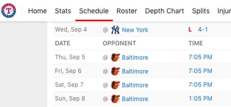 Back to Lynn. How many times have you heard the "we've got a plane to catch!" joke, particularly in baseball, when a game is dragging on? A billion times. But to actually hear a pitcher say it in the middle of a game, while he's pitching, mind you, is pretty wild. Lynn, who is having a resurgent season, was actually pitching well, giving up just three runs on five hits against a loaded Yankee lineup. But he's not kidding himself. The Rangers are not in any kind of playoff race and they're probably not too concerned with winning this game by any means necessary. Let's keep it moving and hop on a plane to …. (checks notes) …. Baltimore?