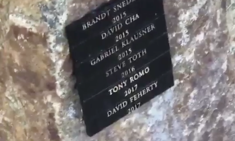 With the ace, Mickelson joins an elite club of people to A. get invited to Nantz's house and B. make a hole-in-one and earn a spot on Nantz's "Pebble Beach Pebble." Below is a screenshot from a video taken in September of 2017 of the names that have been engraved for their aces: