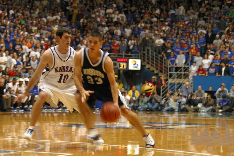 First, after Woodland explained at his winning press conference how Kirk Hinrich pretty much killed his hopes of hooping professionally, this photo of Woodland, who was an all-state high school player before going to Division II Washburn University on a scholarship, being guarded the future NBA star emerged: